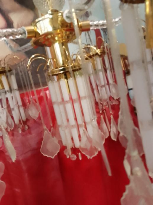 Prodajem unikat stakleni luster cijeli ,Širina je. 70 cm ,a visins je 75 cm