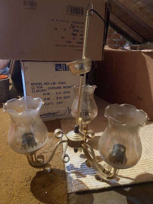 Na prodaju je stari (40+ godina) luster za 3 žarulje, nekorišteni. Luster je stajao na tavanu u kutiji.