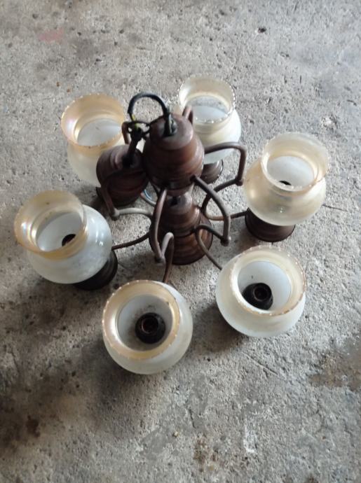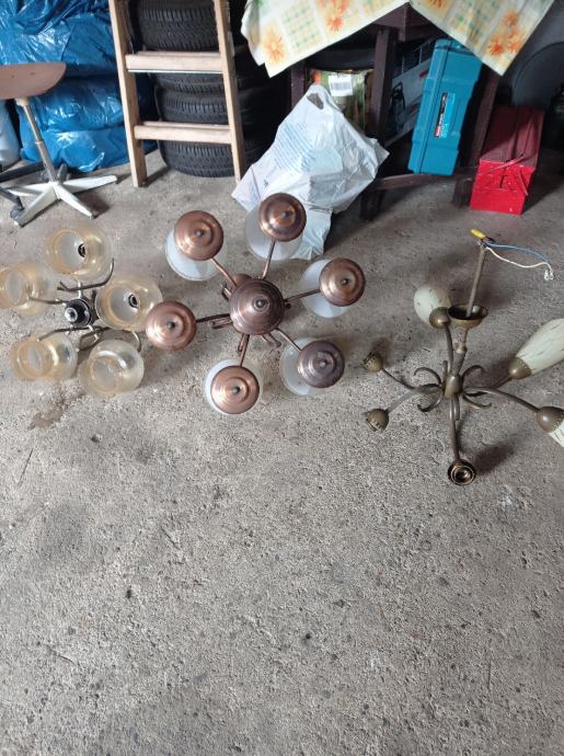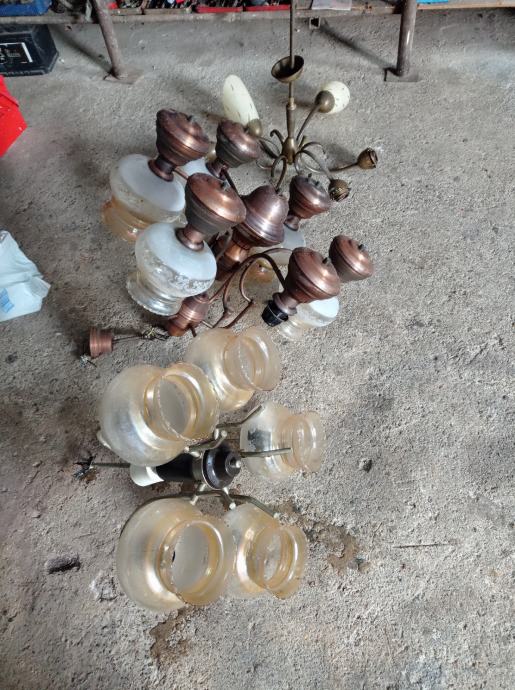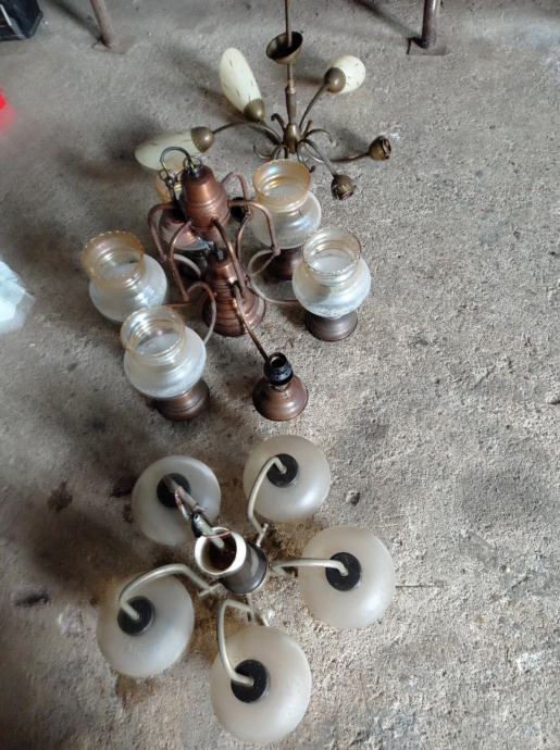 Tri lustera i pet rezervni čaša za luster.Nalazi se u glini.Cijena za sve 30 eura.098-161-4533
