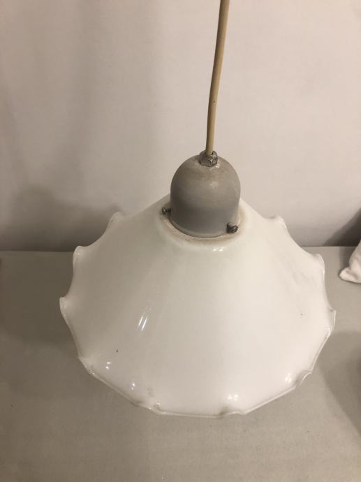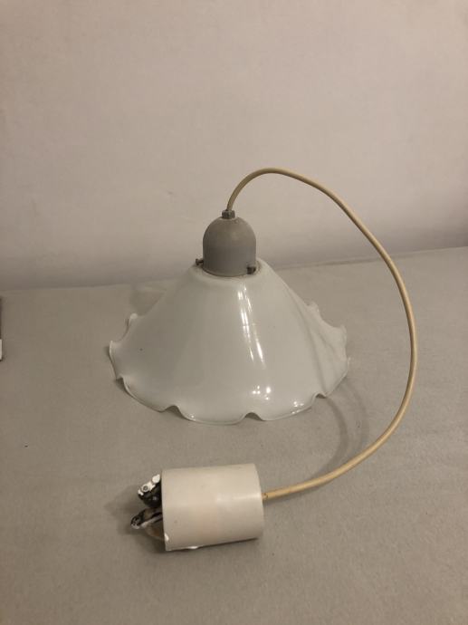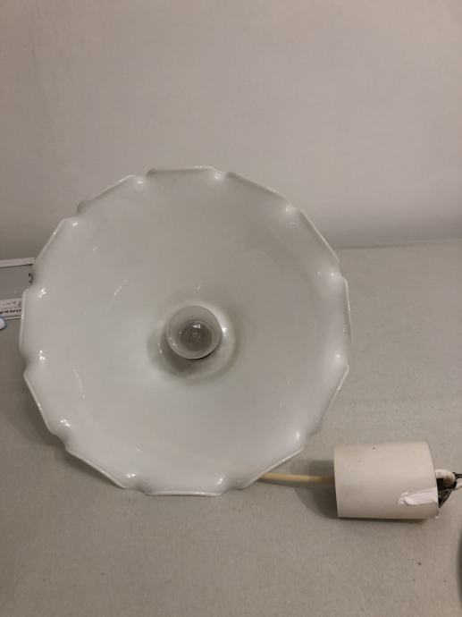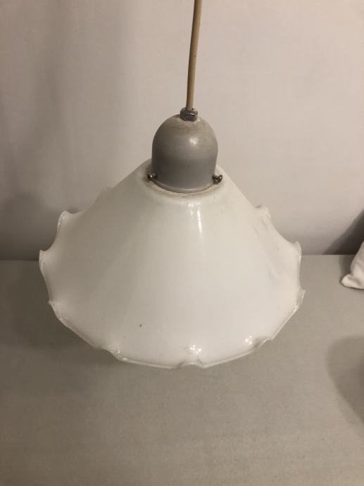 Visilica od bijelog stakla, valovitog ruba, neoštećena, za jednu žarulju. Ne šaljem dostavom, isključivo osobno preuzimanje radi stakla.