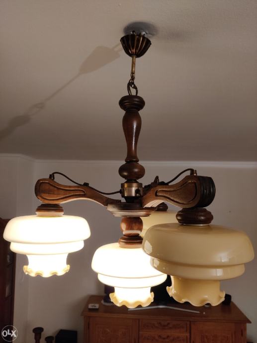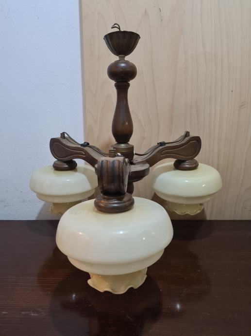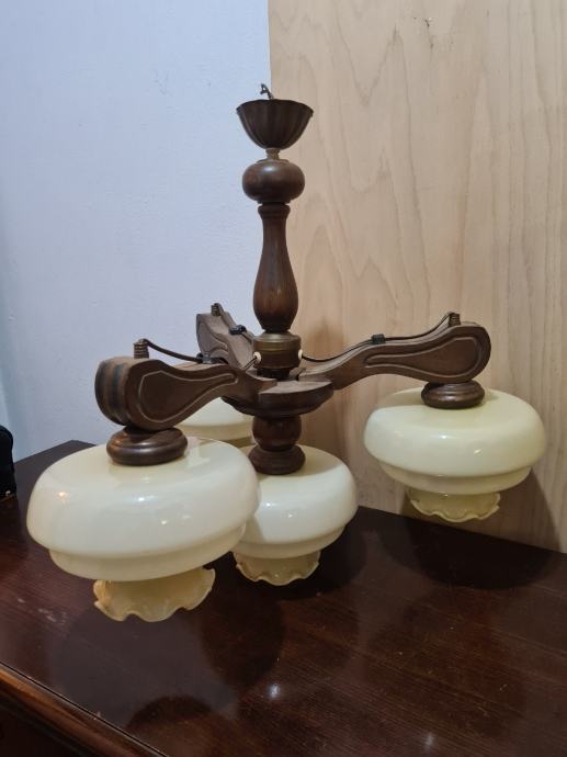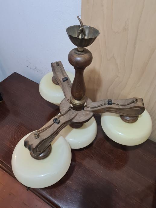 Prekrasan starinski drveni luster, sa 4 rasvjetna tijela. Promjer lustera je 78mm