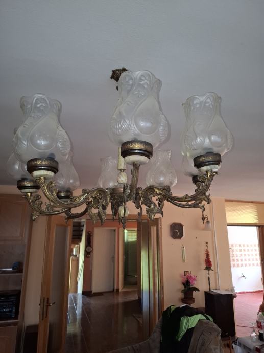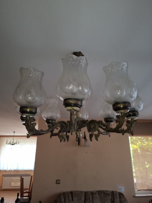 Prodajem masivni stari luster i dvije zidne lammpe u savršenom stanju. Uz luster ide i jedno rezervno stakleno sjenilo.