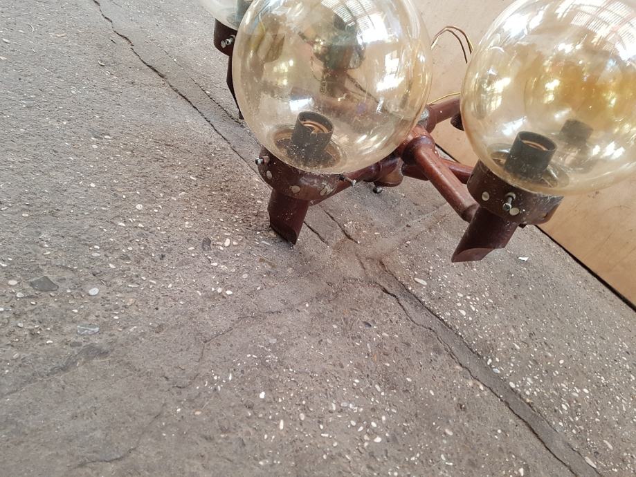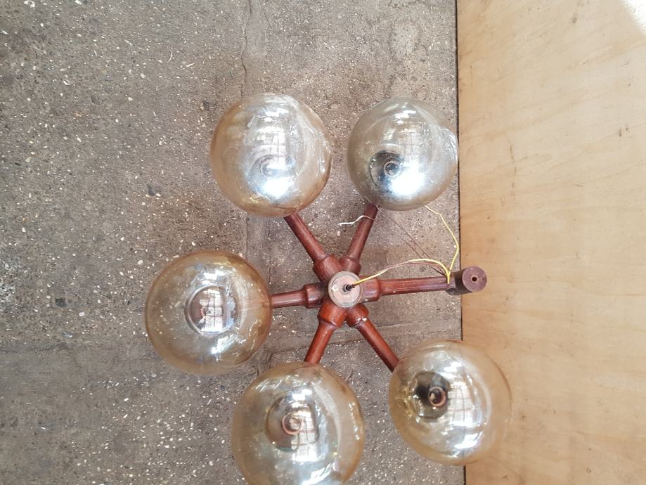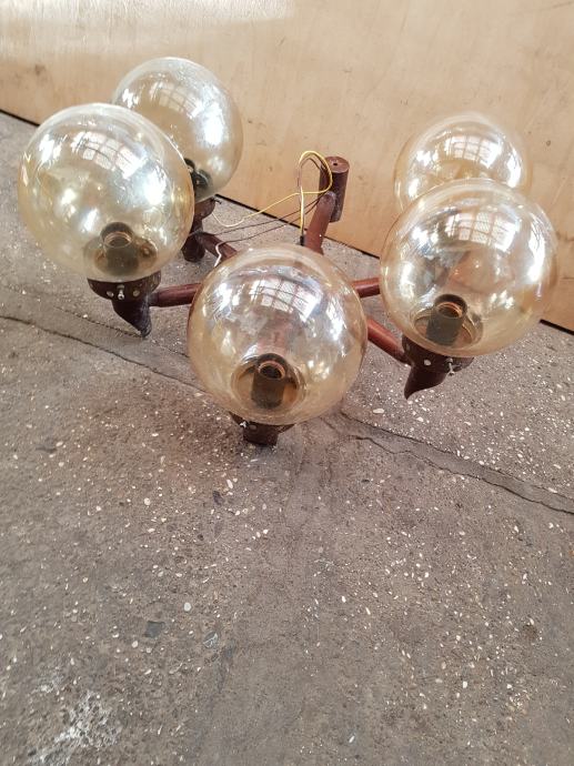 Lustet je sa drvenim postoljem i fali jedna kugla.