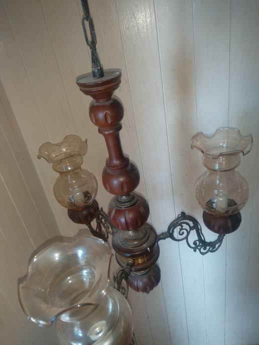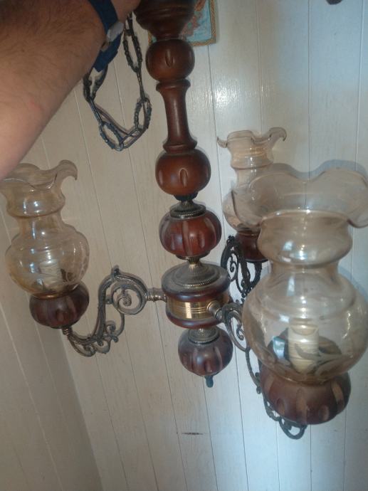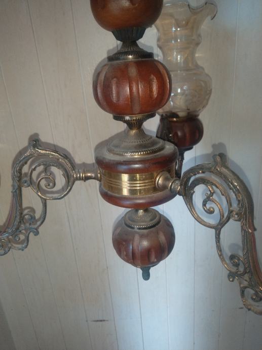 Prodajem starinski luster vidljiv na slikama. Kombinacija drvo,mesing,staklo. Placanje na racun ili gotovina.