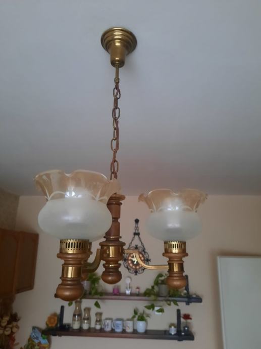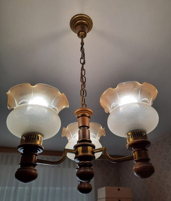 Prodaju se dva starinska lustera, u retro stilu, jedan kombinacija mesing i stakleni zvončićio, drugi kombinacija tokarena bukva, mesing i stakleni zvončići. Cijena po komadu, bez rasvjetnih tijela.