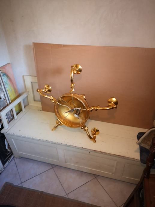 Prodajem starinski pozlaćeni luster, 6 žarulja. Nedostaju staklene kugle 5 komada i donje poluokruglo staklo.