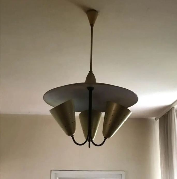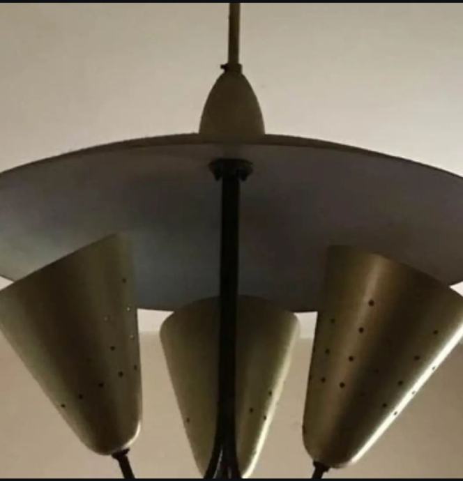 Talijanski metalni dizajnerski luster iz 50tih godina. Boja je staro zlato.