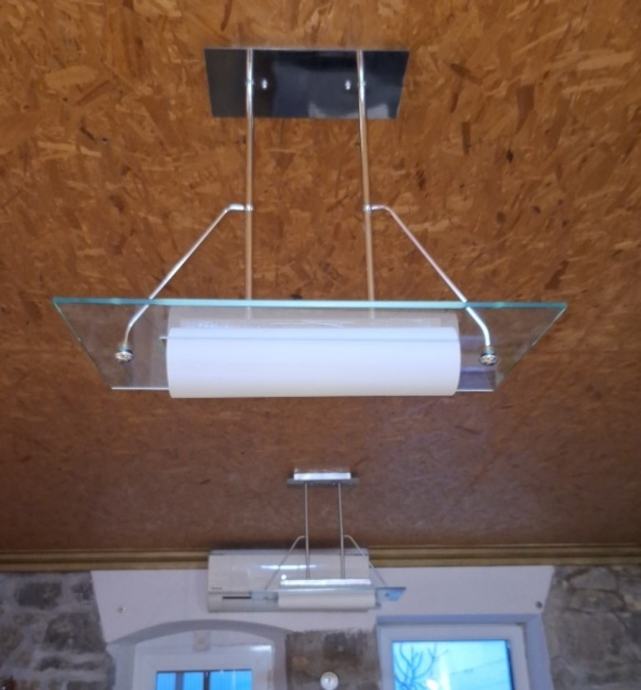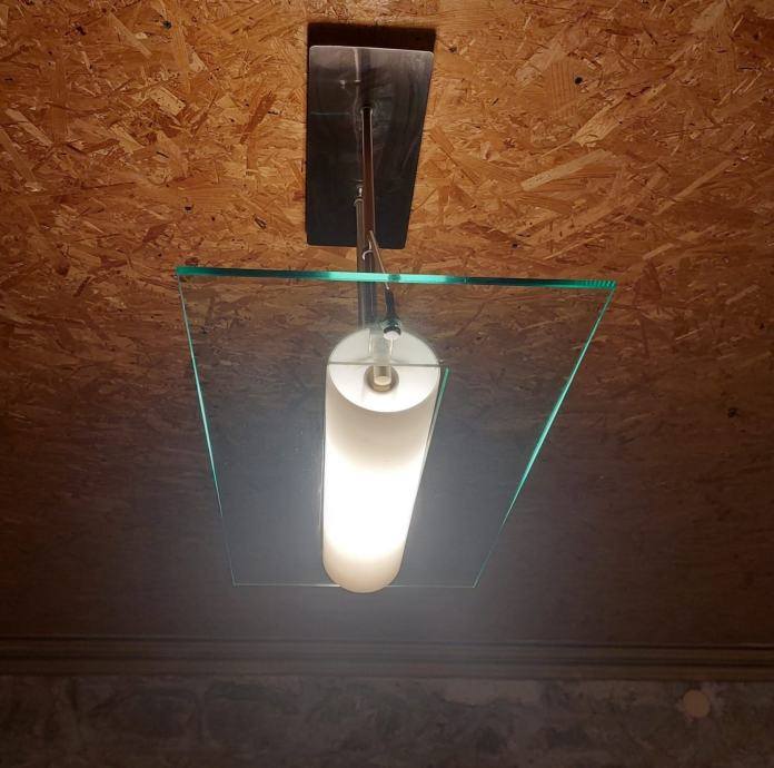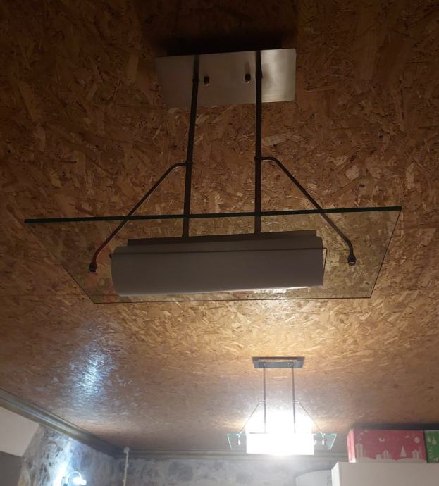 Prodajem tri moderna lustera u odličnom stanju. Kombinacija stakla i metala čini ih izdržljivima i atraktivnima. Svaki luster ima pravokutnu staklenu ploču kroz koju prolazi svjetlosni element, s metalnim nosačem koji se učvršćuje na strop. Svi elementi su funkcionalni i spremni za montažu. Kvalitetna izrada koja će dobro poslužiti u bilo kojem prostoru.