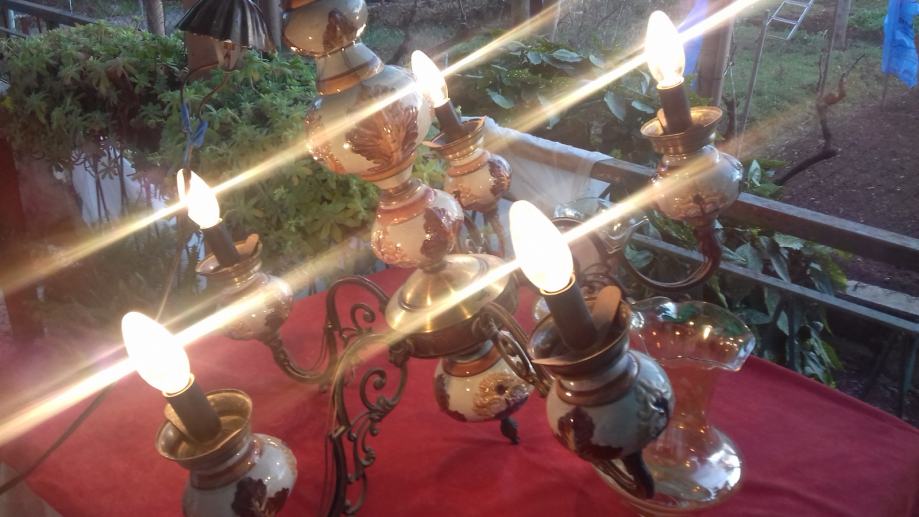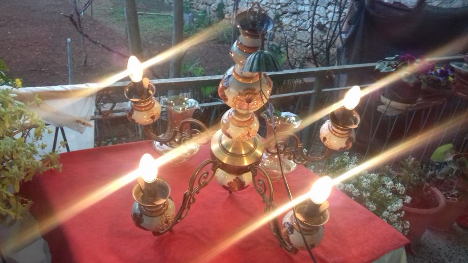 Prodaje se veliki luster od mesinga i keramike dimenzija: