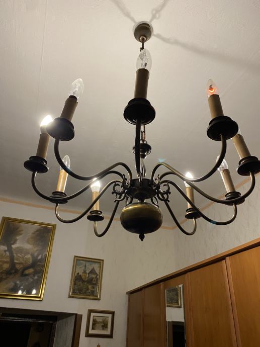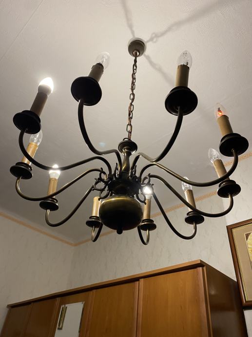 Prodajem veliki dekorativni luster s 10 krakova u klasičnom retro stilu. Luster je izrađen u mesinganom stilu i vrlo je dekorativan, pogodan za veće prostorije, dnevni boravak, blagovaonicu, kuću ili vikendicu.