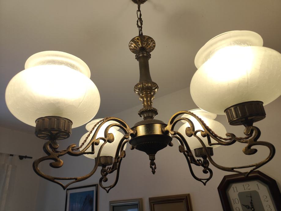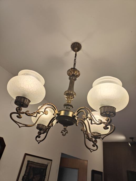 Luster sa 4 staklene neoštećene kugle. Ispravan i očuvan.