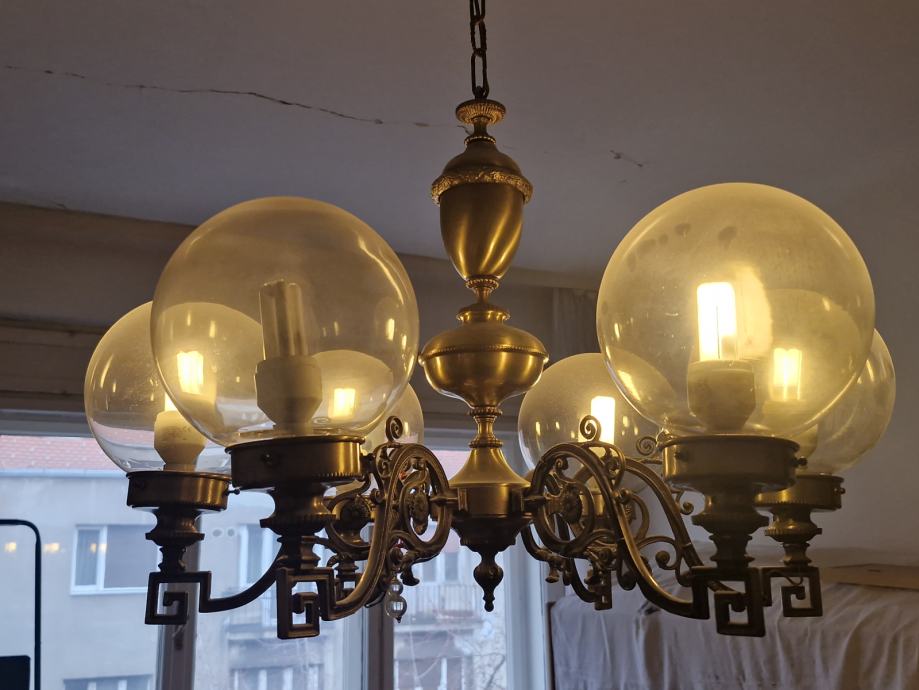 Prodajem jako dekorativni luster sa 6 kugli od zatamljenog stakla.