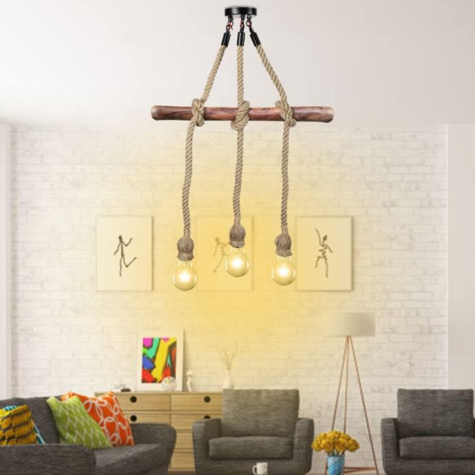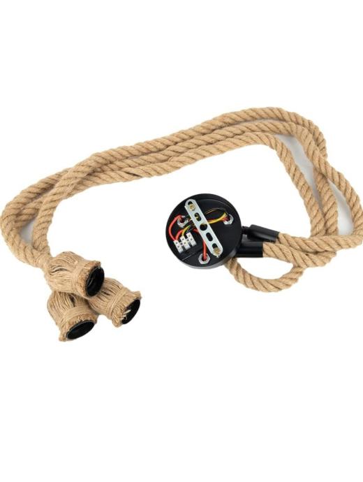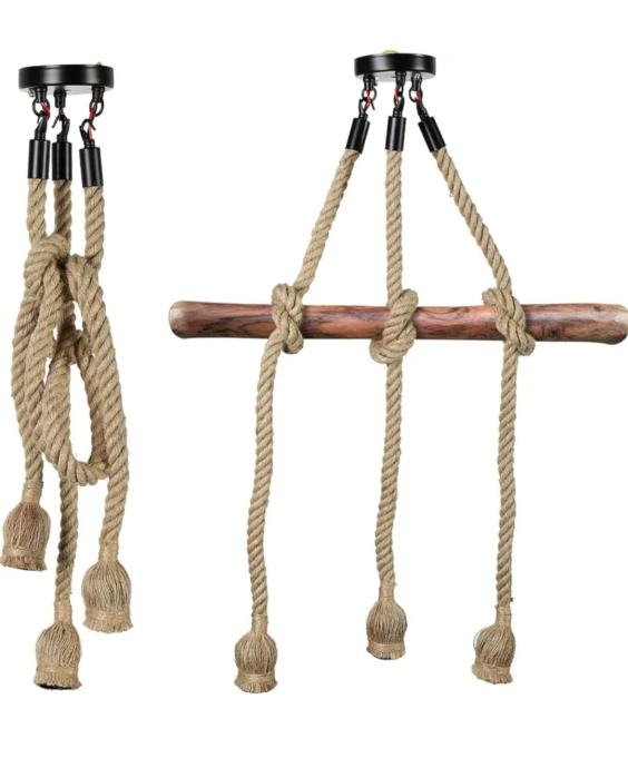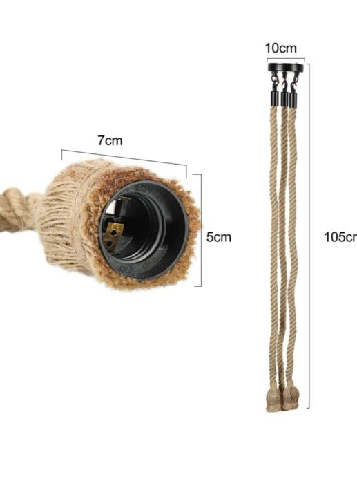 Visilica od 100 cm Konopljina svjetiljka Luster s 3 glave Vintage, Visilica s užetom stropna svjetiljka Industrijska Retro E27