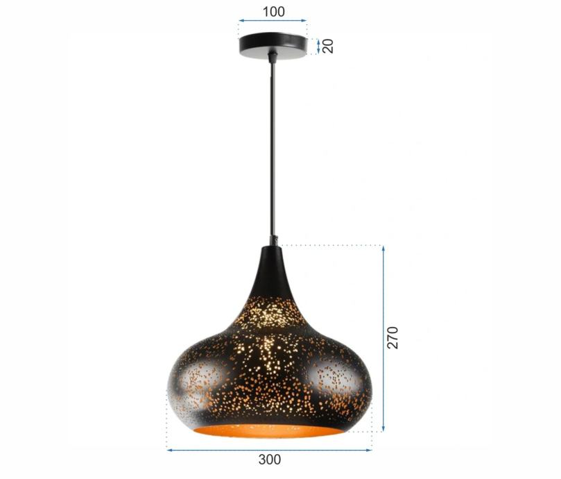 Luster je u potpunosti izrađen od metala sa stropnom rešetkom. Ima navoj dizajniran za žarulju E27. Duljina kabela se može prilagoditi prostoriji ili rasporedu.