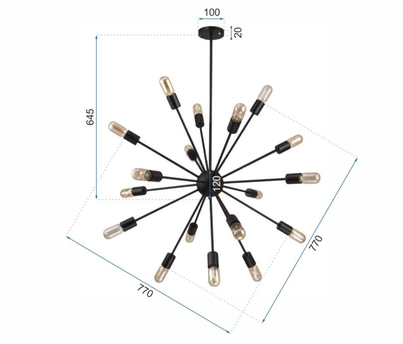 Predstavljamo Vam neobičnu lampu s čak osamnaest svjetlosnih točaka! Predstavljen luster svakako je hrabar izbor – nije teško primijetiti da naš proizvod odmah privlači pažnju. Sve zahvaljujući iznimnom broju krakova prekrivenih navojem žarulje, tako da lampa može napajati do osamnaest točaka svjetla!