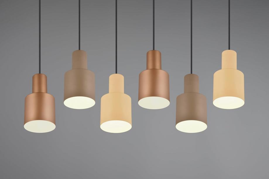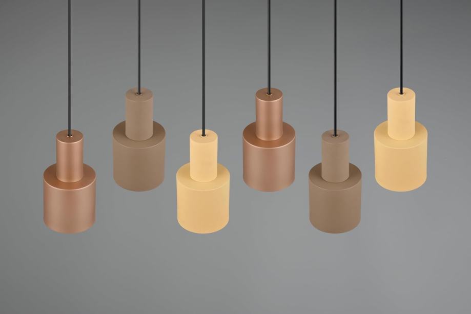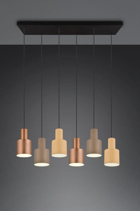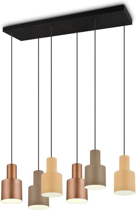 -Agudo viseća svjetiljka sa 6 žarulja u mat crnom metalu sa sjenilima u boji kave, bež i taupe
