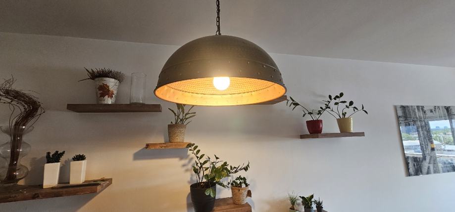 Nova visilica bakrena ,donjeg promjera kupole 35 cm.Ručni rad,nisam 100% siguran ali mislim da se radi o bakru.U svakom slučaju lagana legura i konstrukcija. Na fotografijama se vidi jedna visilica koju imam u stanu,a drugu (novu i zapakiranu) prodajem.