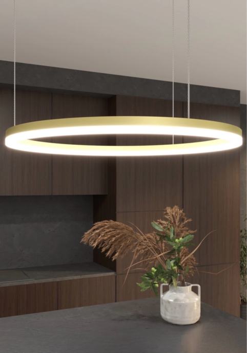 Visilica, led krug sa zlatnim rubom, vrlo dekorativna i moderna, mogucnost postavljanja tri nijanse svijetlosti. Potpuno nova, nikada montirana.