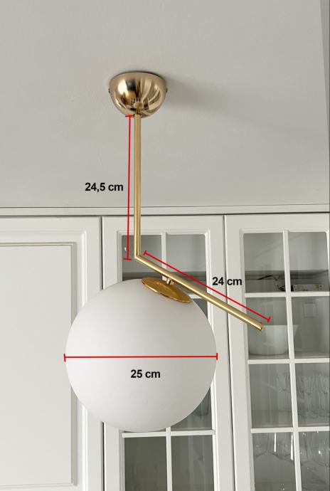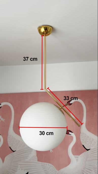 Prodajemo jednu visilicu promjera 30 cm (dimenzije na slici) i dvije visilice promjera 25 cm (dimenzije na slici). Kugla je staklena, a ostalo metal.