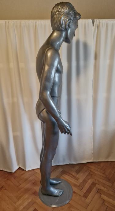 Prodajem iznimno očuvanu mušku lutku izložbenog manekena, izvorno korištenu u modnim izlozima tijekom 1980-ih godina. Lutka maneken izrađen je od kvalitetnog kompozitnog materijala (plastika/fiberglas), s pažljivo oblikovanim crtama lica i tijela, metalik sivog tona koji dodatno naglašava skulpturalnu formu.