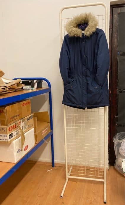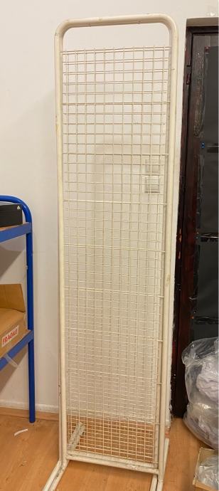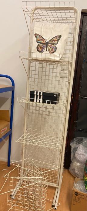 Žičani stalak, može sa ili bez polica 204cm visina, 50cm širina. police možete skidati i stavljati po potrebi. Na slici se vidi i kada je polica gore (kutija na polici), ali i kada nema polica pa visi jakna. imaju 2 kom. Osobno preuzimanje, nikuda ne šaljem.