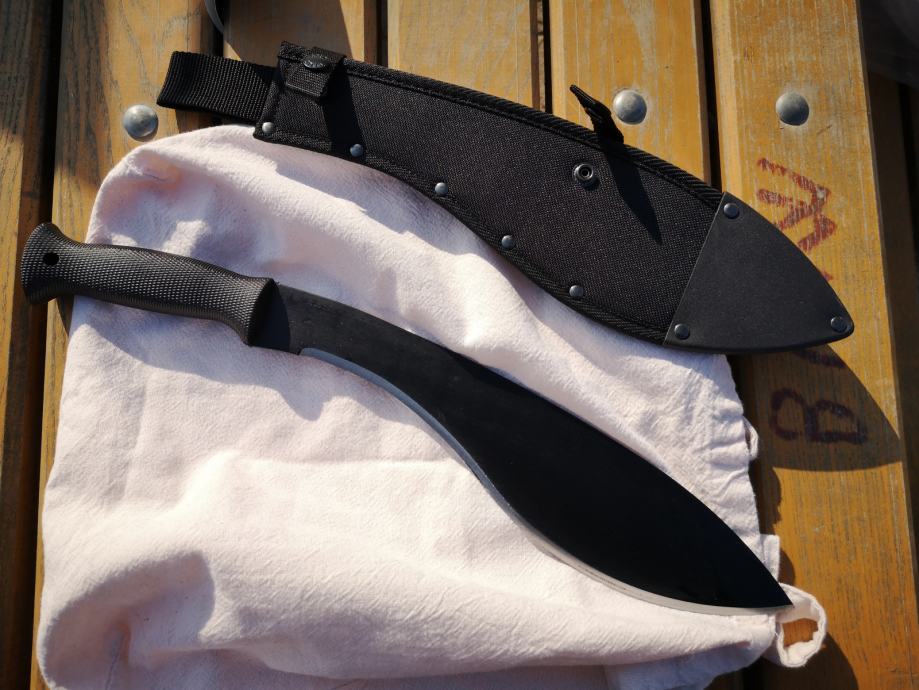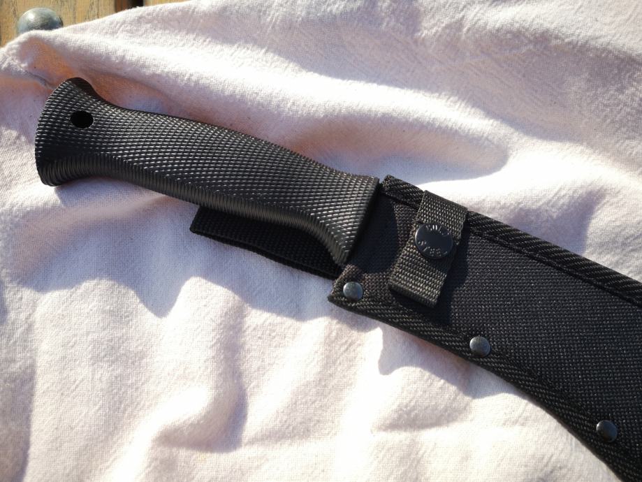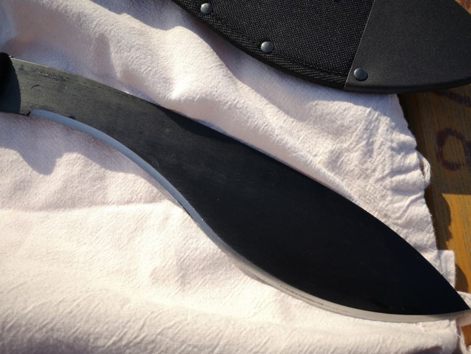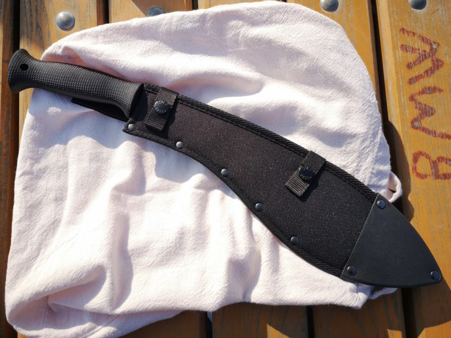 U ponudi je MAČETA. Potpuno nova, nekorištena i zapakirana. Ova mačeta ima zakrivljenu oštricu. Namjenjena je boravku u divljini, za krčenje grana, šikare i sl. Oštrica je izrađena od 1055 karbonskog čelika sa crnim matiranim zaštitnim premazom. Drška je izrađena od polipropilena. Korice su Cor-Ex™ - kordura. Zapakirana je u zaštitnoj futroli.