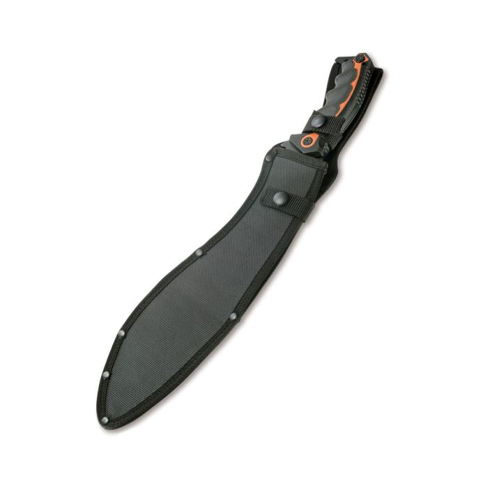 Mačeta Magnum Chainsaw Backup nikada ne bi iznevjerila svog vlasnika, čak ni u tropskoj prašumi. Čvrsta ravna konstrukcija s gumenom drškom učvršćenom s četiri vijka čini ovaj nož još čvršćim i trajnijim nego što je potrebno. Mačeta Magnum Chainsaw Backup ozbiljan je šumski alat za rezanje i održavanje mladica. Duljina i debljina oštrice su savršeno uravnoteženi, a ručka nudi ergonomski dizajn tako da možete raditi bez umaranja. Oštrica je izrađena od čvrstog nehrđajućeg čelika 420 otpornog na udarce zbog čega oštrica dugo zadržava oštrinu. Čvrsti najlonski omotač s zaštitnom oblogom i dvostrukim kopčama štite mačetu i nositelja.