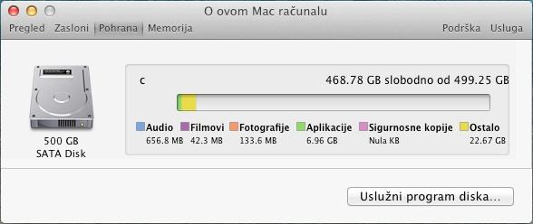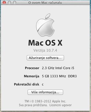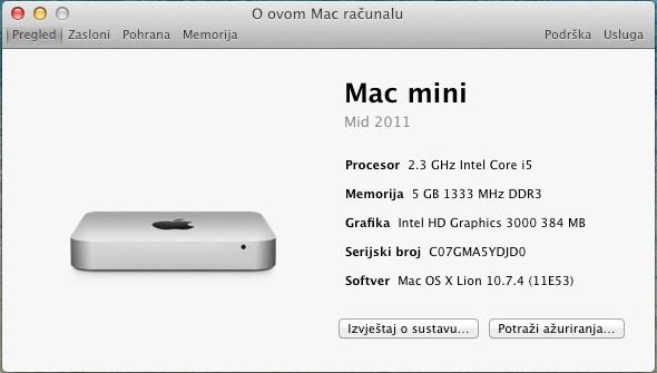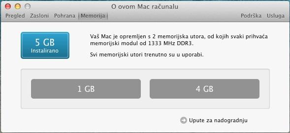 Memorija: 5 GB 1333 MHz DDR3 (4+1, nadogradivo)