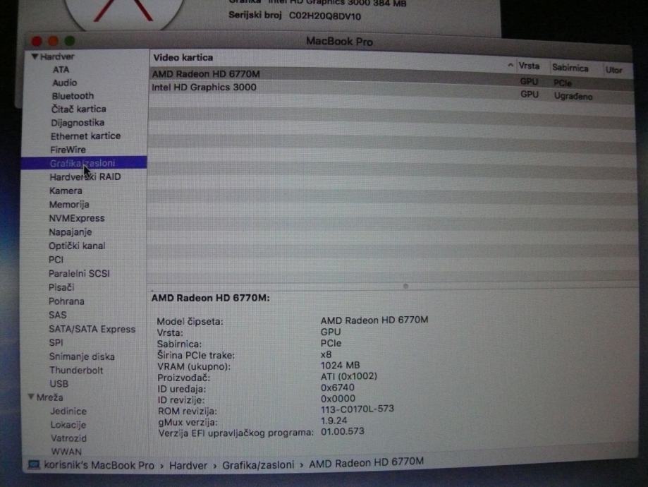 Grafika: AMD Radeon HD 6770M (1 GB DDR5 VRAM) zajedno sa HD3000