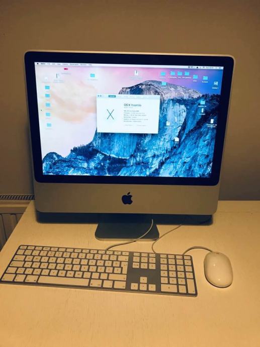 iMac je u savršeno očuvanom stanju s obzirom na godište i potpuno ispravno. Vrlo tih u radu. U kompletu je originalna tastatura i miš, max. očuvani. OS X Yosemite instaliran.