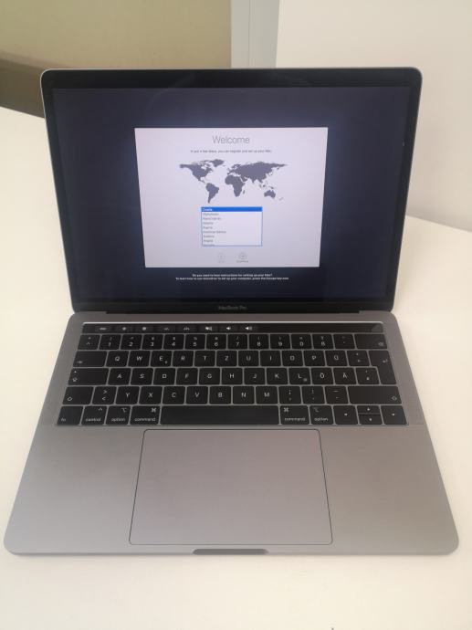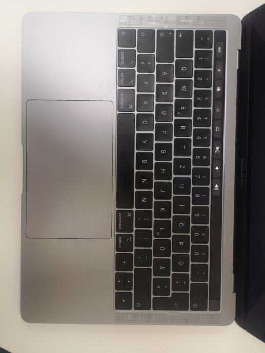 Prodaje se MacBook Pro 13" oznake modela A1989, EMC 3214, i5 2,3 GHz, 8 GB RAM, SSD 256 GB, tipkovnica je njemačka.