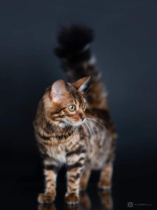 Kako su zaigrani mačići, tako su također i njihovi odrasli roditelji jer bengalska mačka je energetska mačka, znatiželjna te nadasve pričljiva pasmina mačke impozantnog izgleda divlje mačke nasljedovan od predaka ALC-a.