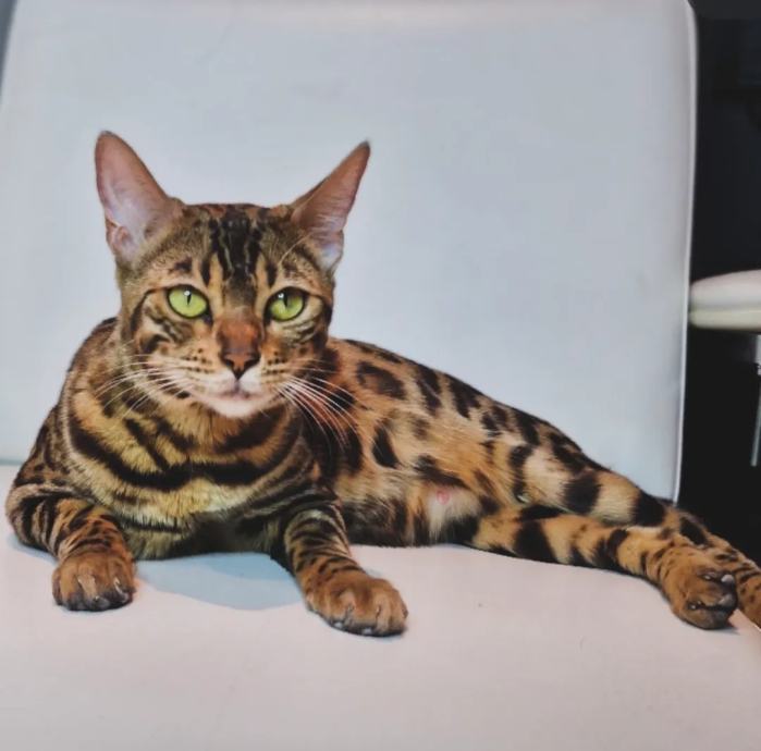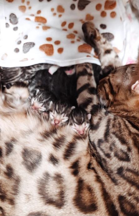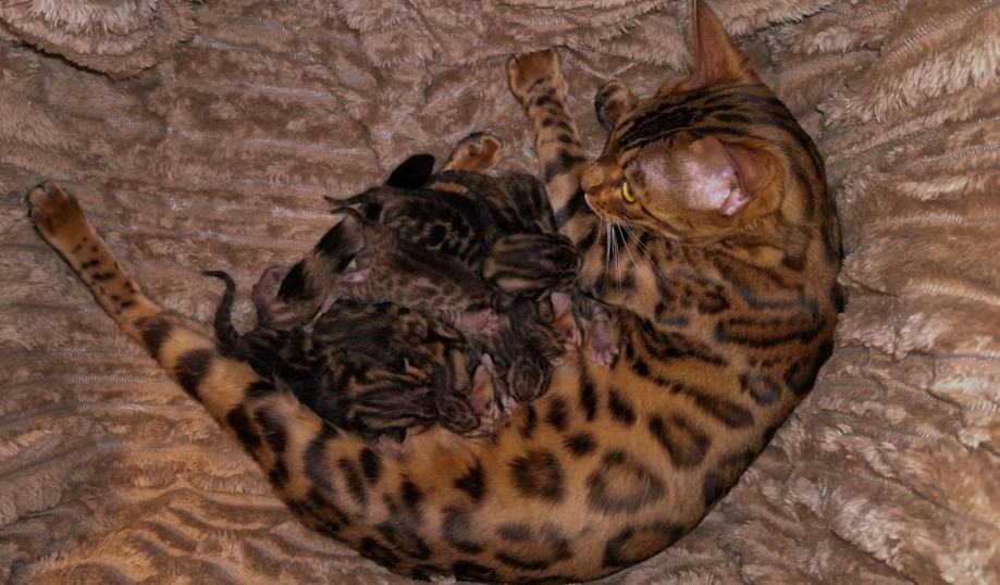 Majka je prekrasna bengalka odličnog karaktera iz uzgoja Exotic Leopard, odrastala u kućnim uvjetima uz djecu.