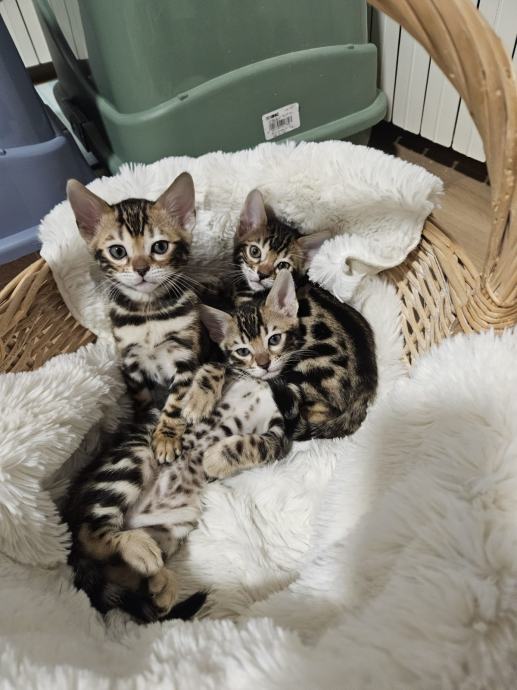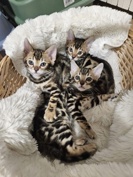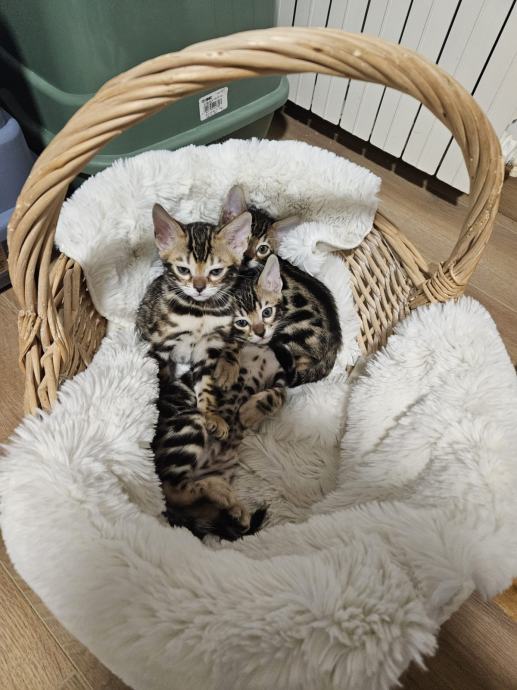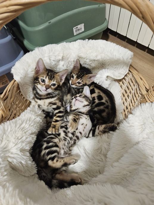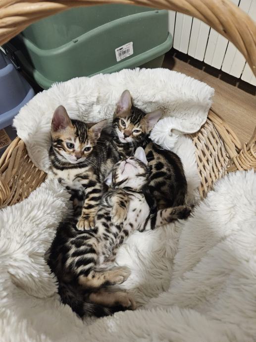 Primamo rezervacije za prekrasne Bengalske mačiće, odgojene u kućnom okruženju kao ljubimci. Roditelji su izvrsnih gena, karaktera i zdravlja. Mačići će biti cijepljeni i čipirani, sa unesenim imenom po želji novog vlasnika. U leglu je 5 mačića. Okoćeni 23.2.2025. Na fotografijama se nalaze roditelji i mačići. Mi smo mala uzgajivačnica FEROBY`S, sa dvije ženke i jednim mužjakom.