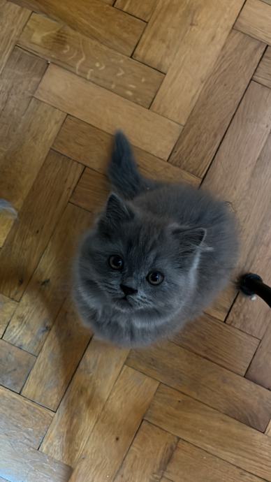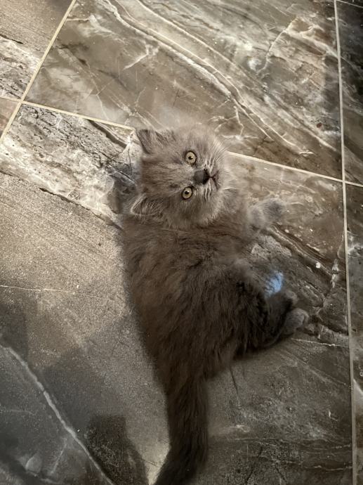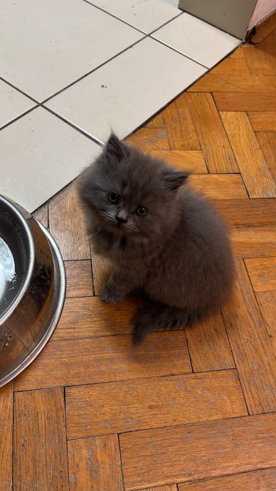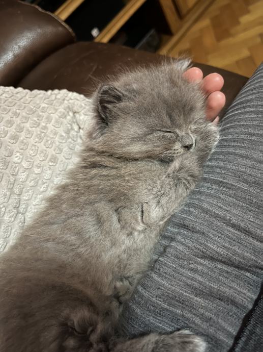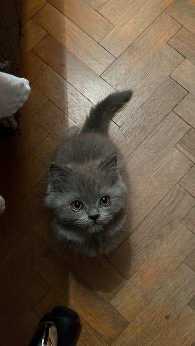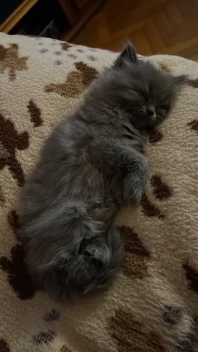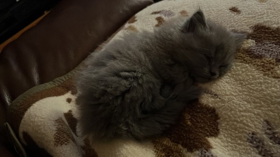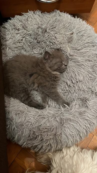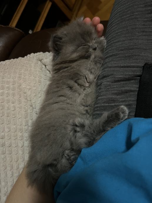 Mačić omacen 21.9., cijepljen prvom dozom protiv parazita 12.11., uredno jede i pije, koristi pijesak za nuždu, razigran, pri rođenju vrh repa mu je zakrivljen malo, oku nevidljivo, pod prstima osjetno