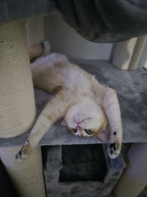 Naviknut je na mačji WC, vrlo je mirnog karaktera i uredan u stanu, nikada ne grebe namještaj. Izuzetno je pitom i nema šanse da ogrebe ljude. Mačak je kastriran.