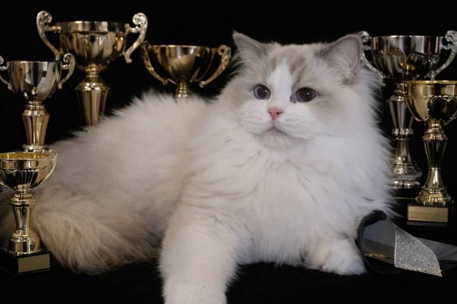 Ragdolli su pointed mačke, što znači da im je tijelo svijetlije od ''pointed'' dijelova (lice, uši, šape, rep, leđa). Dolaze u tri uzorka (Mitted, Colorpoint i Bicolor). Ovo je druga najveća pasmina, ženke imaju 5-7 kg, dok mužjaci mogu imati 7-13+ kg, međutim, jako dugo sazrijevaju (do pete godine!)! Ova pasmina je uzgajana prvenstveno zbog svog prekrasnog karaktera (Rag doll na engl. jeziku znači ''Krpena Lutka''). Poznati su i pod nazivom ''Nježni divovi''. Zainteresiraniji su za ''svoje ljude'' od većine pasmina. Dočekat će vas na vratima, pratit će vas iz sobe u sobu, izležavati se na vama, pričati vam, spavati s vama... Također su i vrlo inteligentni, tako da ih je lako naučiti da donose lopticu, da se šetaju na povodcu (našima je trebalo pola sata). Ipak, nisu visokoaktivne mačke, dapače, vrlo su mirni. Ne grizu i ne grebu, što ih čini odličnim obiteljskim ljubimcima. Imaju poludugu dlaku, ali NEMAJU poddlaku, tako da se ne linjaju ni približno kao ostale pasmine s dužom dlakom, stoga je održavanje krzna svedeno na minimum. Također, kako nemaju poddlaku, krzno im je ''mekano kao zekino''. Odlično se slažu s ostalim kućnim ljubimcima!