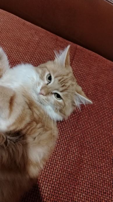 Prodajem predivno dugodlako mače narančasto-bijele boje. Mače ima prekrasnu gustu dlaku, bijele šapice i jako je razigrano, voli se dosta maziti i puno je energije. Odlično se snalazi s ljudima i voli druženje, zato tražimo nekoga tko bi imao vremena za njega i pružio mu pažnje. Odgajan je isključivo u stanu, te voli djecu, cijepljen je, očiščen i sve potrebno. Zna sam na pijesak, za više informacija i upita slobodno se javite u inbox