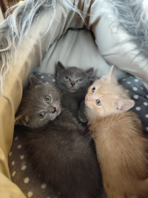 U leglu su krem dečko, tamniji sivi dečko te malo svijetlije siva curka sa malko dužom dlakom.