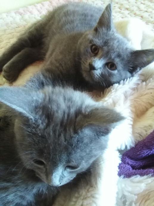 Dva mala mjesanca spremna su odmah za novi dom, mjesani su izmedju plave ruske macke i tate koji je perzijanac ruske krvi. Prvih sedam slika su oni dok su ostale iz drugih legla kao vece, inace ovo je sedmo leglo. Nalaze se u Donjem Miholjcu kod mojih roditelja, cijena je fiksna.