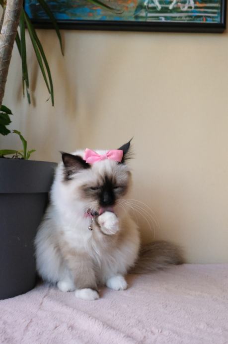 A ona samo želi ono najjednostavnije – svoje ljude, sigurno mjesto i nježnu ruku koja će je češkati ispod bradice. Mekana je, blaga i neodoljivo umiljata, prava mala dama velikog srca. Birmanke mačke su poznate po tome da vole društvo i prate svoje ljude posvuda, a ona je upravo takva – nježna sjena koja želi biti voljena.