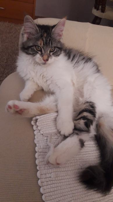 Snižena cijena Maine Coon mačića! Bijela je curica. Dečko je crno sivi. Prekrasni. Cijepljeni, očišćeni, uredni, socijalizirani. Mačići su rođeni. 10.03.2019.