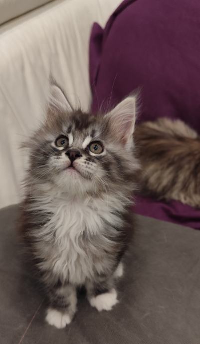 Slobodno čistokrvno Maine coon mače. Roditelji naši ljubimci. Za sve informacije molim poziv. Za preuzimanje će biti spremno između Božića i Nove Godine.