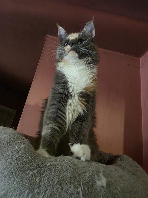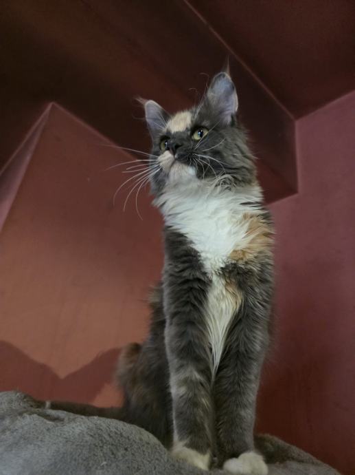 Naša razmažena slatkišica navršila je 4 mjeseca i možete ju udomiti ako imate veliko srce i spremni ste joj pružiti puno pažnje i topli dom s brigom za nju kakvu zaslužuje. Jako su mazne i zaigrane, nestašne, ali dobro odgojene i uredne mace. Roditelji su vrhunski, porijeklom iz Rusije, veliki i snažni i testirani na FeLV, FIV i FIP, redovito cijepljeni, potpuno zdravi i kod njihovih predaka kao ni potomaka nema nasljednih bolesti. Mačkica je bez rodovnice, zato je i cijena manja, ali to ne umanjuje njenu kvalitetu. Sve ćemo rado i najbolje objasniti u razgovoru s Vama: