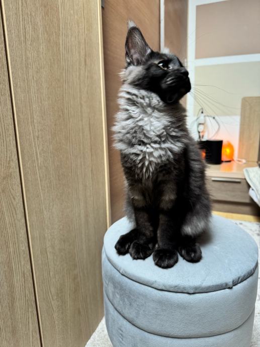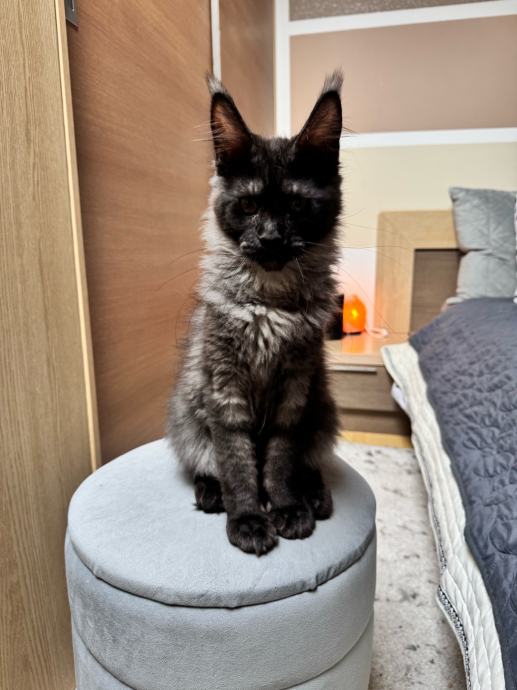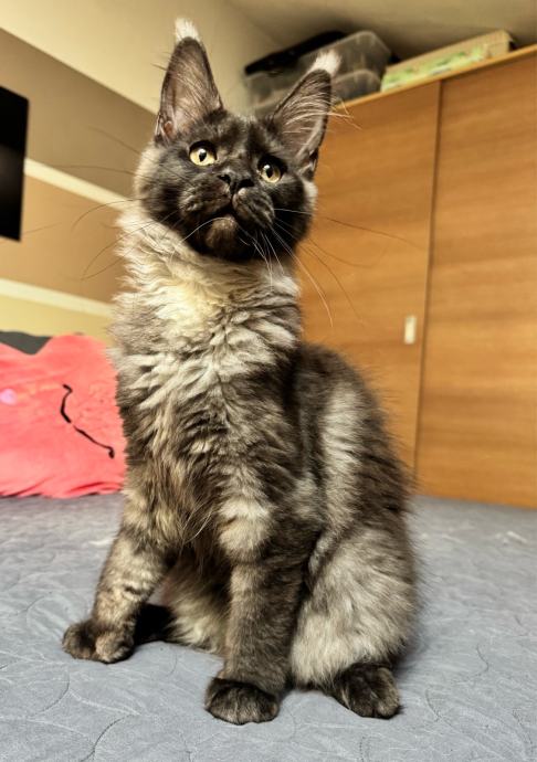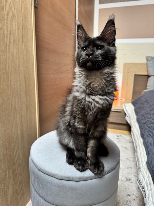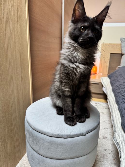 Na prodaju prekrasna ženka pasmine Maine Coon, stara 4 mjeseca, boje black smoke.
