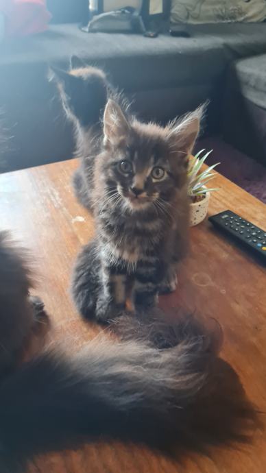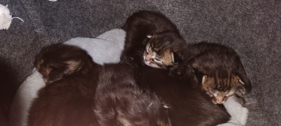 Čistokrvni Maine coon mačići, šareni, okoćeni 18.12. Mama i tata su prisutni. Tata sa papirima, mama iz legla sa papirima. 3 mužijaka i 2 ženke.