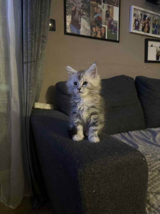 Prodaje se prekrasna Maine Coon ženka, okocena 22.11.2025. godine. Mačić je zdrav, razigran i pravilno razvijen, odgajan u kućnim uvjetima uz puno pažnje i socijalizacije.