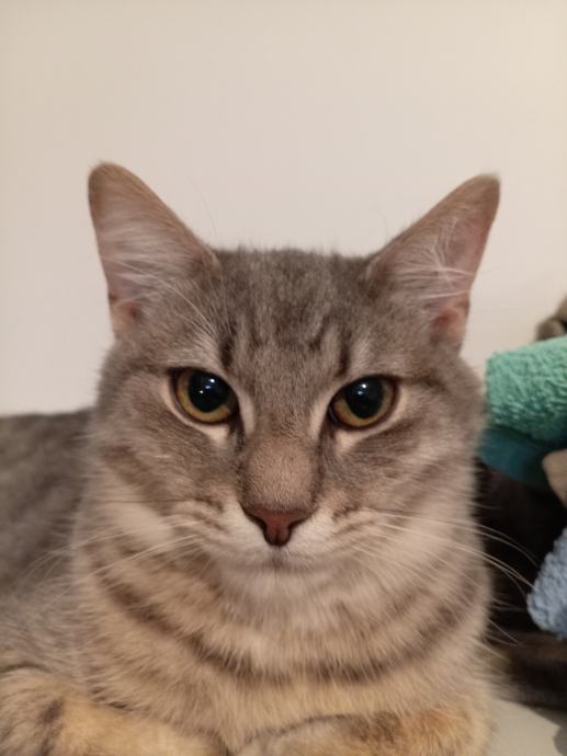 Muški mačić star 6 mjeseci. Otac Maine coon, majka Bengalska mačka. Živahan, umiljat, voli prediti i naučen je na djecu. Nije kastriran, niti cjepljen.