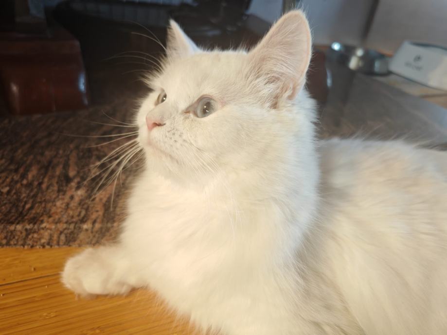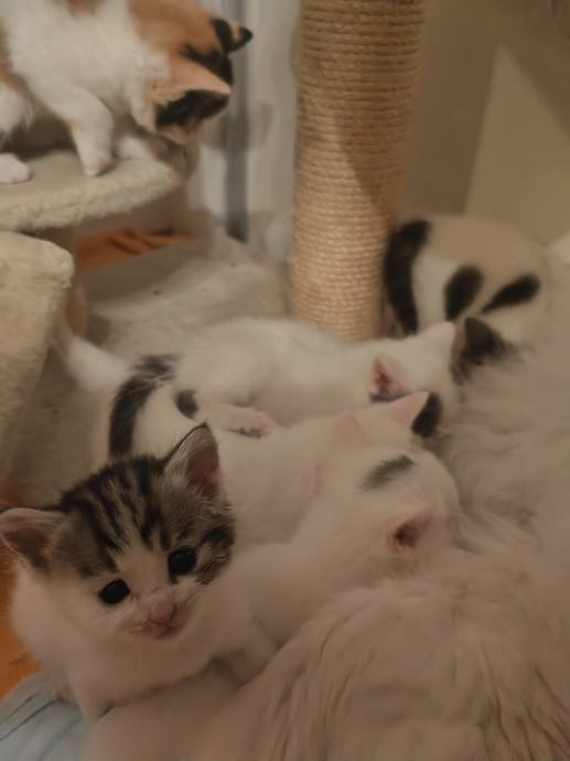 Mačići su okoćeni 12.2.2026. Mama je bijela perzijska sa plavim očima (nije gluha), a otac sivo bijeli domaći mačak. Mačići su odgojeni u dnevnom boravku te su vrlo umiljati i mazni. Odrastaju uz patuljastog šnaucera tako da su naviknuti na psa. Jedu hranu za mačiće, naučeni na korištenje pijeska i očišćeni od parazita.