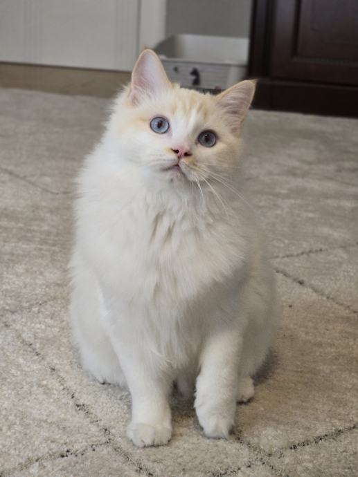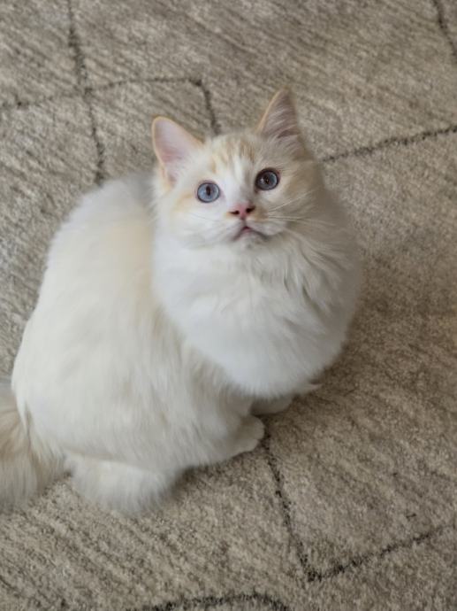 Ragdolli su pointed mačke, što znači da im je tijelo svijetlije od ''pointed'' dijelova (lice, uši, šape, rep, leđa). Dolaze u tri uzorka (Mitted, Colorpoint i Bicolor). Ovo je druga najveća pasmina, ženke imaju 5-7 kg, dok mužjaci mogu imati 7-10+ kg, međutim, jako dugo sazrijevaju (do pete godine!)! Ova pasmina je uzgajana prvenstveno zbog svog prekrasnog karaktera (Rag doll na engl. jeziku znači ''Krpena Lutka''). Poznati su i pod nazivom ''Nježni divovi''. Zainteresiraniji su za ''svoje ljude'' od većine pasmina. Dočekat će vas na vratima, pratit će vas iz sobe u sobu, izležavati se na vama, pričati vam, spavati s vama... Također su i vrlo inteligentni, tako da ih je lako naučiti da donose lopticu, da se šetaju na povodcu (našima je trebalo pola sata). Ipak, nisu visokoaktivne mačke, dapače, vrlo su mirni. Ne grizu i ne grebu, što ih čini odličnim obiteljskim ljubimcima. Imaju poludugu dlaku, ali NEMAJU poddlaku, tako da se ne linjaju ni približno kao ostale pasmine s dužom dlakom, stoga je održavanje krzna svedeno na minimum. Također, kako nemaju poddlaku, krzno im je ''mekano kao zekino''. Odlično se slažu s ostalim kućnim ljubimcima!